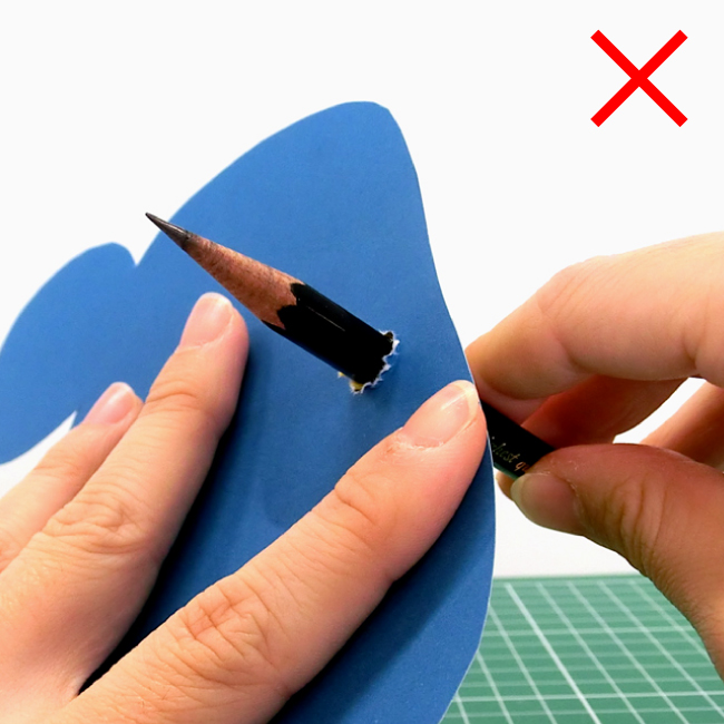 ※穴が大きすぎると割りピンが抜けてしまうので、鉛筆を奥までさし込まないようにしましょう。