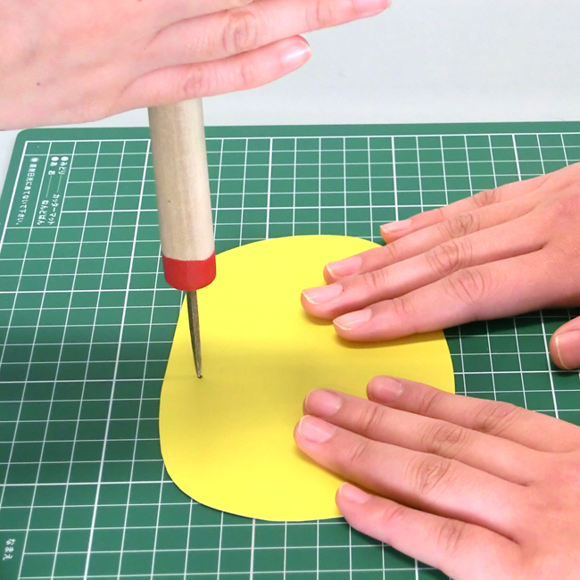 身近なものを使って両面カラー工作紙に穴をあける方法を確認しましょう。