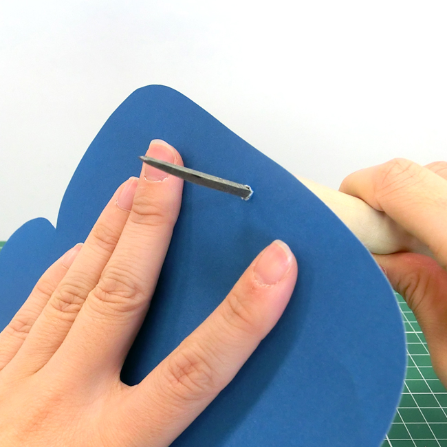 ②きりを使うときは、両面カラー工作紙を他の人に押さえてもらいましょう。