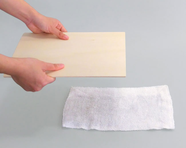 ※板を長時間ぬれた布の上に置くと反ってしまうので気をつけましょう。