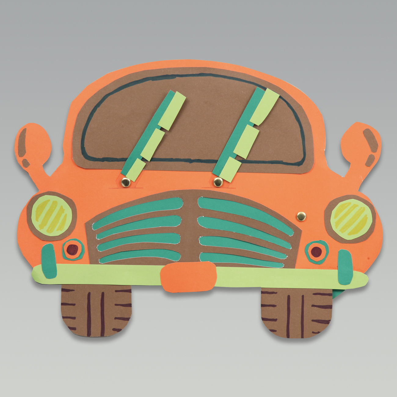 ワイパー部分は透明板がかくれる大きさの工作紙を貼りつけることでボリュームを出しています。