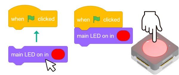 Drag and drop blocks to program using a