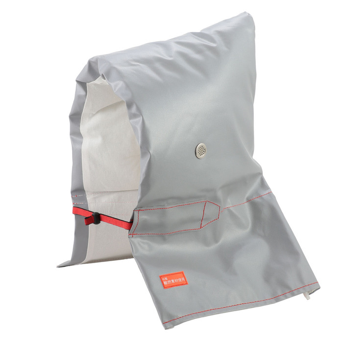 肩までしっかりガードできる防災ずきんです。避難時、外の音もよく聞こえるように耳穴が開いています。夜間の安全を考慮した反射テープ付です。名前・血液型・連絡先が記入できる欄付きです。別売の背もたれカバー(紺/JAN:4521718039800、えんじ/JAN:4521718039787、薄水色/JAN:4521718521633)に収納することで椅子に取り付けて保管することができます。