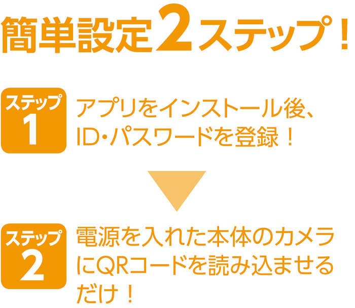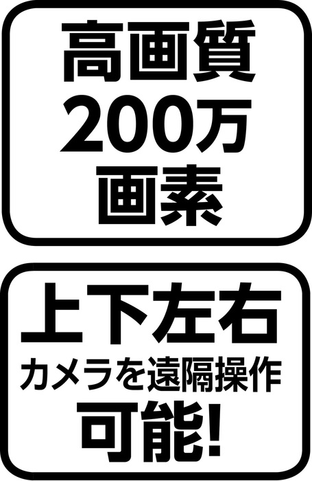 ●カンタン設定2ステップ●高画質200万画素●上下左右カメラを遠隔操作可能!●専用アプリをスマホに入れるだけでカメラの設定・操作・映像確認がすべて可能!スマホで簡単操作&映像確認!屋内専用