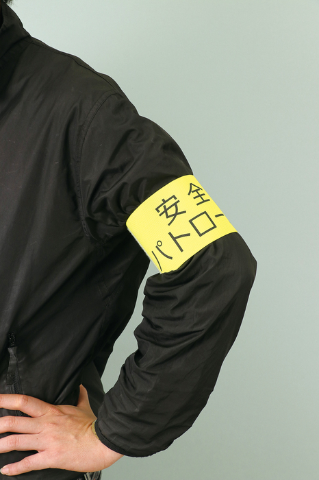 脱着が簡単!安全ピンが不要の伸縮腕章です。