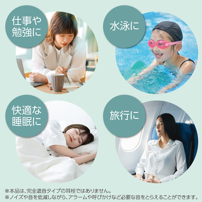 耳栓 騒音過敏にノイズを軽減し、安らぎをサポート。耳にフィットするやわらかシリコン素材。水洗い可能。使用場所は様々(仕事や勉強、水泳、快適な睡眠、旅行等)※ノイズや音を低減しながら、アラームや呼びかけなど必要な音をとらえることができます。イヤーチップは4サイズセット(XS/S/M/L)、携帯に便利なケース付。
