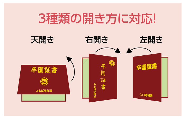 布張風で高級感のある証書ファイルです。卒業証書や卒園証書だけでなく、感謝状や認定証、免状なども収めるのに便利なファイルです。8カ所にコーナーがついており、片面・見開きのどちらにも対応しています。さまざまなサイズに対応が可能です。証書適合サイズ:390×266~398×269mm、266×195~269×195mm。別売の「5940:コーナーポケットシール」を好きな位置に貼れば、適合サイズよりも小さい証書を固定することができます。