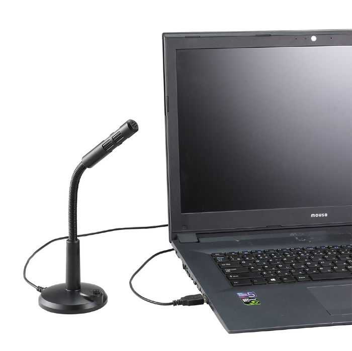 USBポートに接続するだけで簡単にお使いいただけるスタンドマイクです。