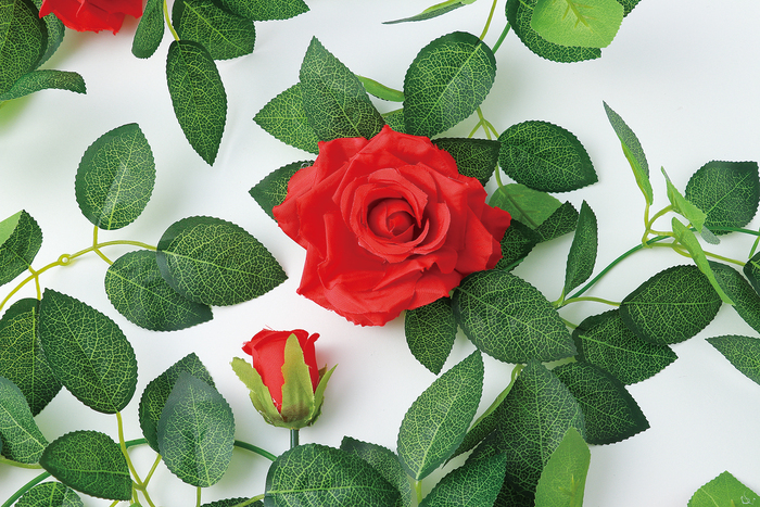フェイクグリーン ガーランド バラ 赤
