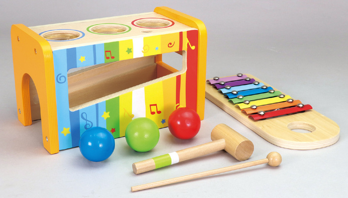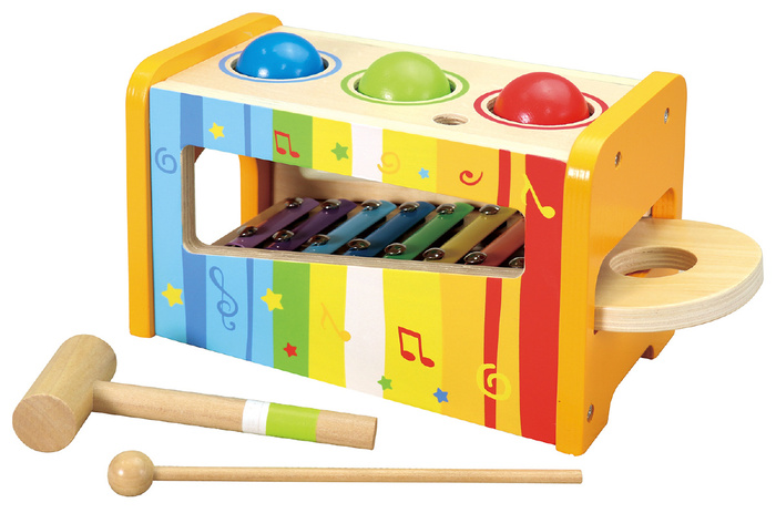 # セット内容本体×1、鉄琴×1、ボール(青・緑・赤)×各1、ハンマー×1、ばち×1