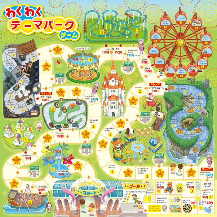 コンパクトサイズのすごろく!テーマパークで楽しく遊んでお買い物の練習もできる!