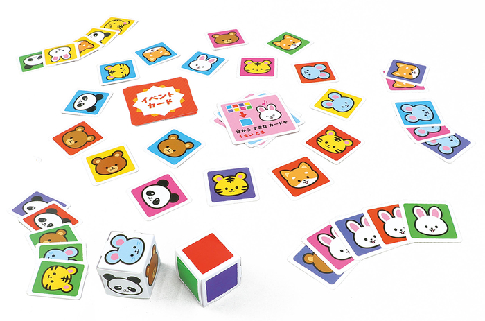 # 商品サイズどうぶつカード:40×40mm、イベントカード:60×60mm、サイコロ(組立時):30×30×30mm