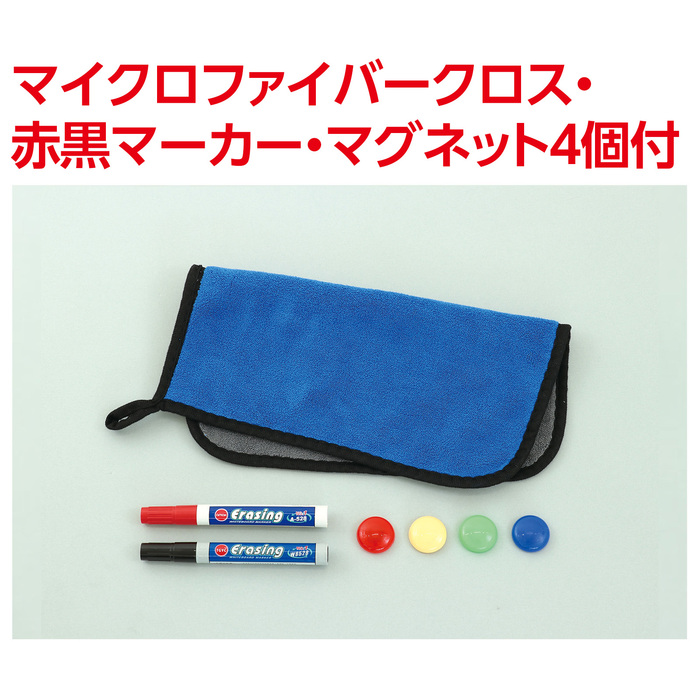 # セット内容本体、マイクロファイバー、ホワイトボードマーカー黒×1・赤×1、マグネット×4