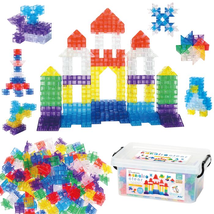 学校教材メーカーが開発した日本製のブロック・世界25か国、日本全国4000か所以上の幼稚園保育園に採用・グッドトイ賞にも選ばれた安心の日本製ブロックのニューカラー。・たて・よこ・ななめ・自由にさしこめるから簡単組立、少ないピース数で様々な作品が作れる・色鮮やかなクリアカラー、光を当てるとキラキラと輝く・想像力、色彩感覚、図形感覚、論理的思考力など様々な能力をはぐくめる