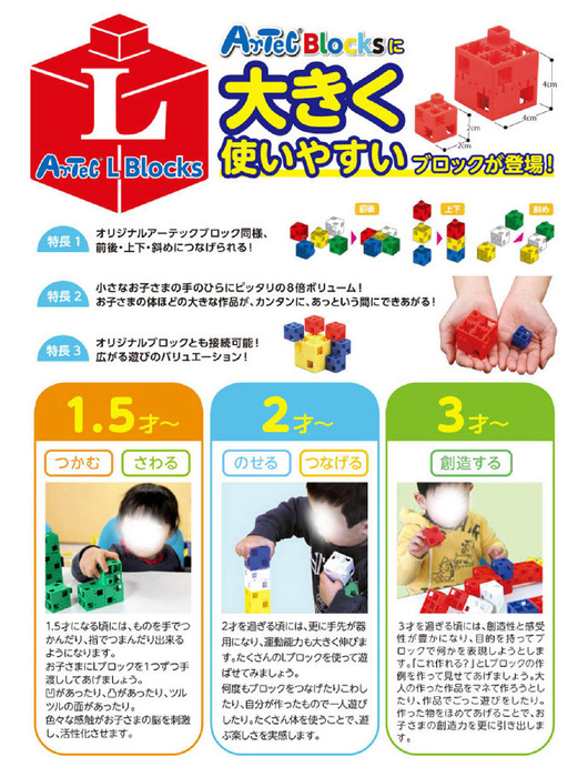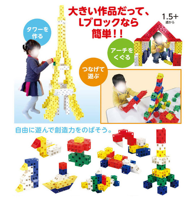 # 仕様●Lブロック基本四角:W40×H40×D40mm ●Lブロック三角A:W40×H 40×D20mm、120ピース、作例集付き、530×358×187mm