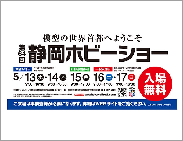 来る5月13日(水)~5月17日(日)、ツインメッセ静岡にて開催される「第64回静岡ホビーショー」に出展いたします。