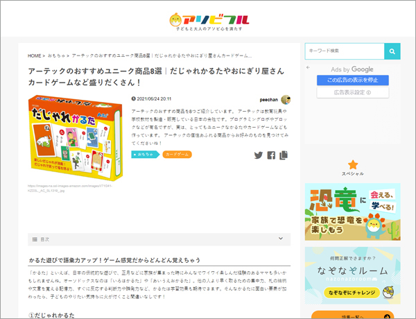 「遊び」を楽しく紹介するメディア「アソビフル」で『アーテックのおすすめユニーク商品8選』が紹介されました。