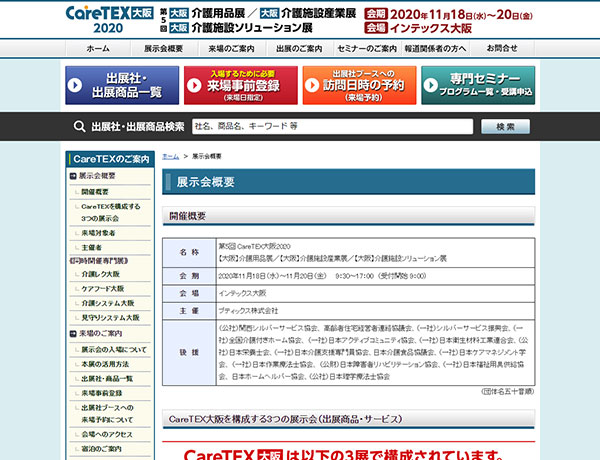 来る11月18日(水)~20日(金)、「第5回 CareTEX大阪2020」に出展いたします。