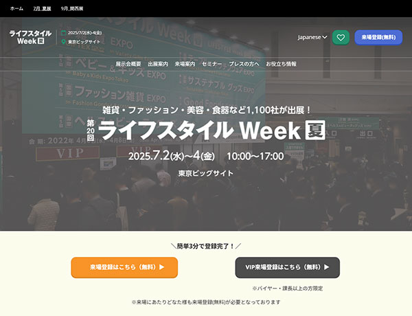 7月2日(水)~4日(金)、「第20回 ライフスタイルWeek夏」で開催される「第1回 インバウンド向けグッズEXPO/第2回 推し活EXPO」に出展いたします。