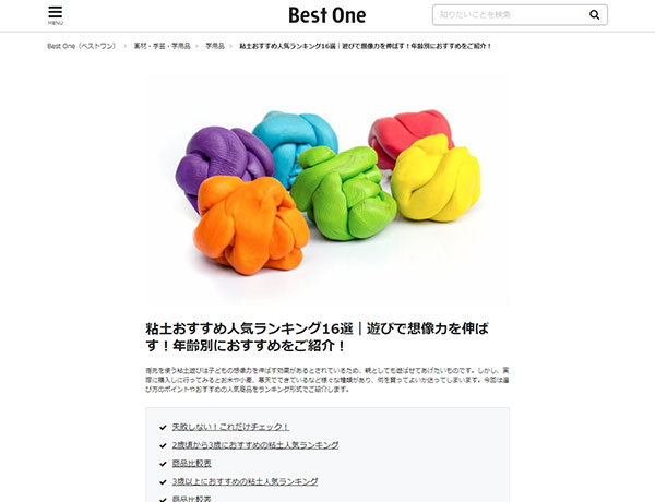 ランキングサイト「Best One」の「粘土おすすめ人気ランキング16選」で、アーテックの『無臭・抗菌 油ねんど』が第5位に選ばれました。