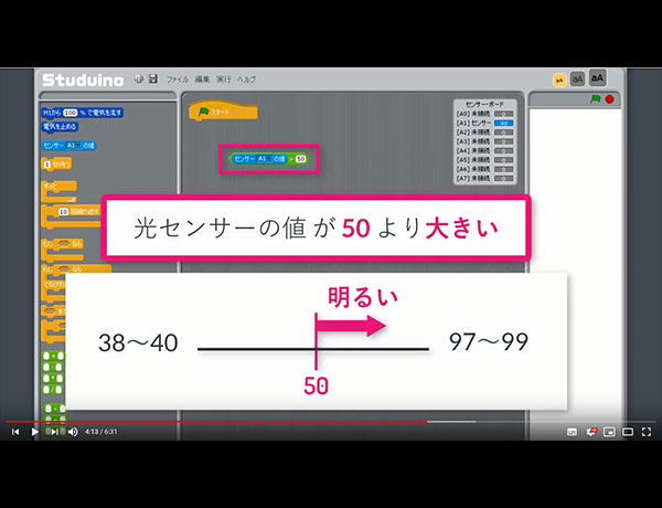 この動画は、「未来の学びコンソーシアム」(※1)が運営する「小学校を中心としたプログラミング教育ポータル」(※2)に掲載されている、実施事例「A分類 理科 第6学年