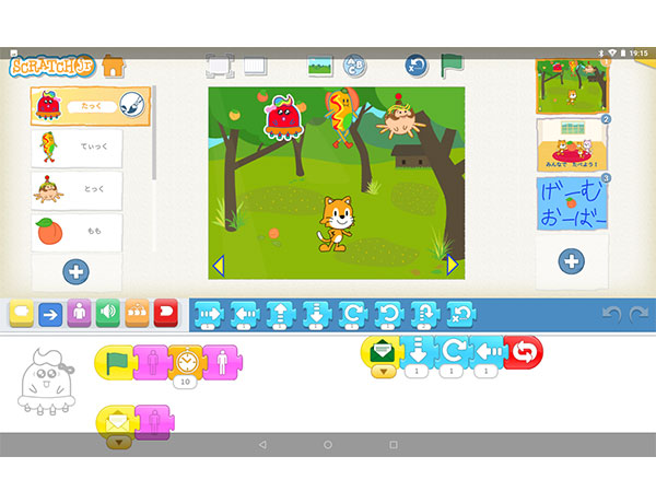プログラミングにはMIT(マサチューセッツ工科大学)メディアラボが開発した『ScratchJr』(スクラッチジュニア)を使用。スクラッチジュニアは、子どもが自分自身で対話型の物語やゲームを作成することができる、低年齢向けのプログラミング言語です。