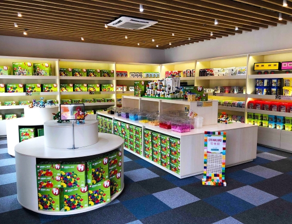 館内には、アーテックブロックで作り上げられた香港の街並みや、アーテックロボを用いて構築された動くファクトリーなどさまざまな作品や教材が展示されています。ワークショップスペースや教材の販売コーナーも設けられており、今後アジア各国との教育事業の連携にあたっての拠点としていく構えです。