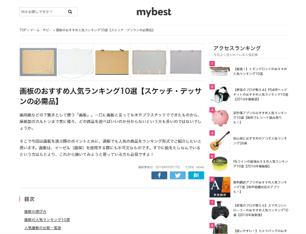 「人とモノをつなぐメディア mybest」の「画板のおすすめ人気ランキング10選」で、『アーテック 新型フレーム付画板』が2位に選ばれました。