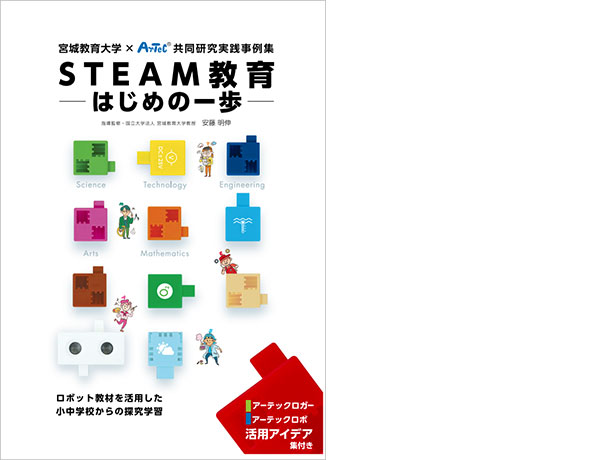 プログラミング教材『アーテックロボ』や、デジタルデータ計測教材『アーテックロガー』を用いたSTEAM<Science(科学)/Technology(技術)/Engineering(工学)/Arts(人文社会・芸術)/Mathematics(数学)>授業の実践例をまとめた書籍『STEAM教育-はじめの一歩-』を刊行いたしました。