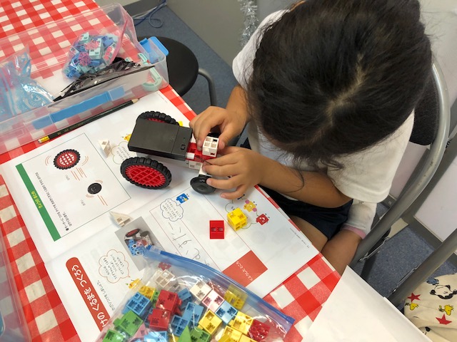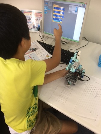 • ブロックを組み立て プログラミングを作成 丁寧に確認しています。