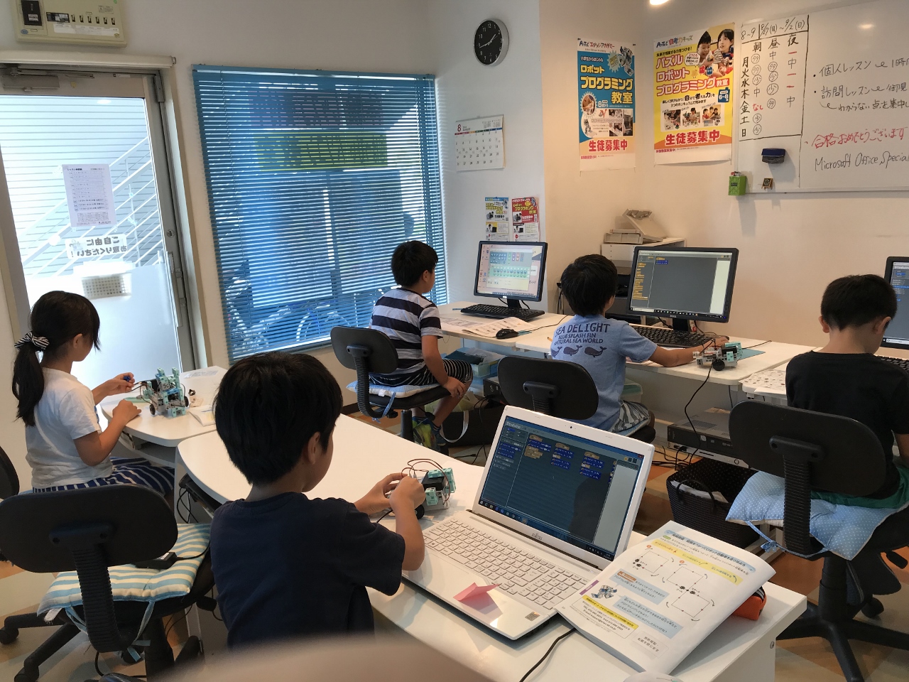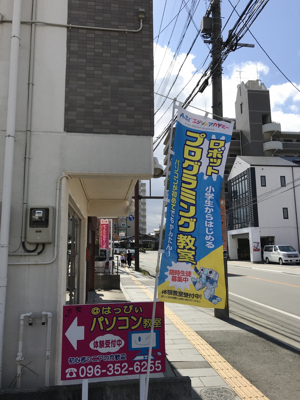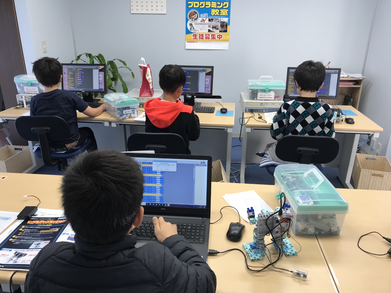 6人までの少人数で優しくゆっくりと習うことが出来ます。ヘッドホン等は使わず口頭でインストラクターが丁寧に説明しますので、ゲームをしている感覚ではなくロボット作りに取り組みながら、プログラミングを学習します。個別指導でマイペースで学習が学べます。プログラミング基礎から応用まで学習が出来ます。熊本附属小学校から350mに位置し、学校の帰りに徒歩で通われる方も多いです。京町本丁バス停横なのでバスで通うにも便利です。光の森校と花立校3校ありますので安心して受講が出来ます。