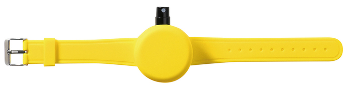 腕時計型のリストバンドに消毒液を入れて気になる時にすぐに消毒できる
