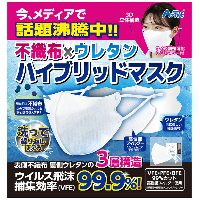 安全性抜群!ひんやり感覚!不織布×ウレタン ハイブリッドマスク