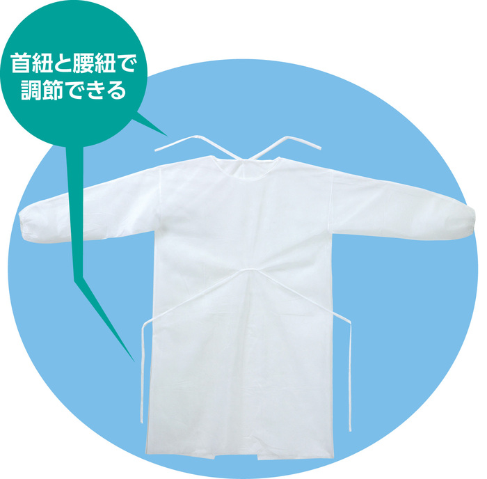 使い捨てのフリーサイズガウンです。熱がこもらないので快適に過ごせます。