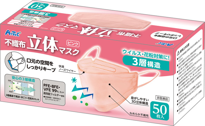 立体不織布マスク ピンク(三層構造)(50枚入)