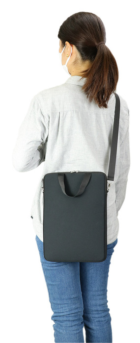 # 商品サイズ外寸:330×245×18mm、内寸:320×240×10mm、紐の長さ:約620~1200mm(調節可能)