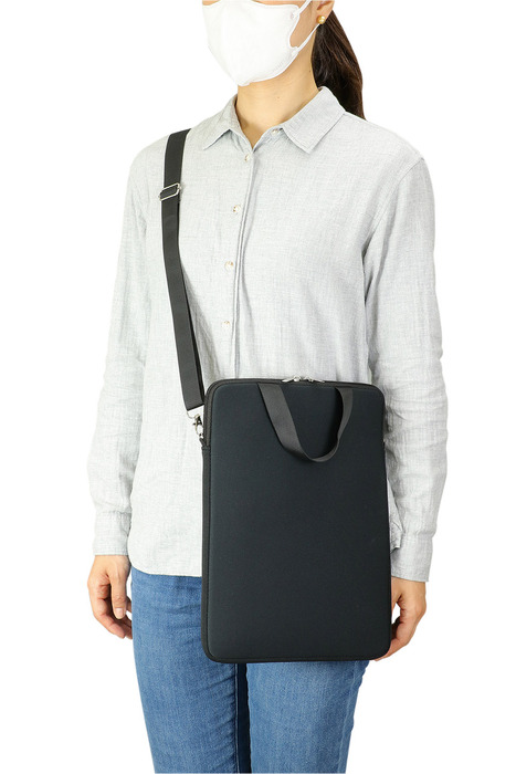 PCタブレット用クッションケース L ブラック ショルダー付