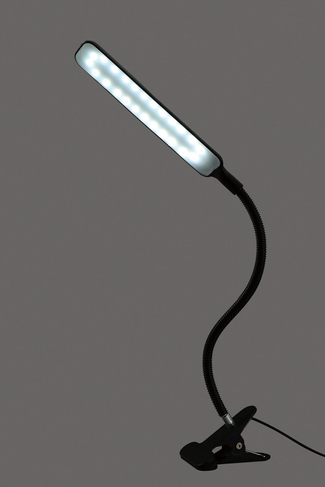 フレキシブルアームで角度を自由に変えて机にはさんで固定できる