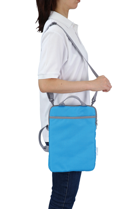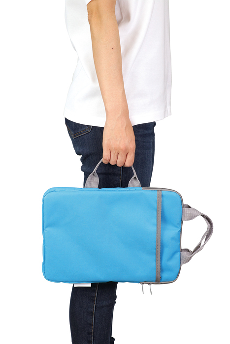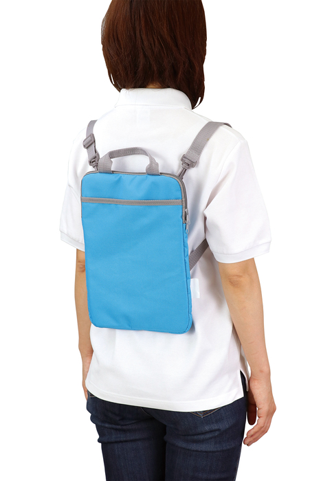 ハンドキャリー、ショルダー、リュック、椅子に取り付けもできる4WAYのタブレットケースです。開け閉めしやすいWファスナーです。ネームタグもついています。11.6インチまでのPC・タブレットに対応しています。内寸約31.5×21.5cm。
