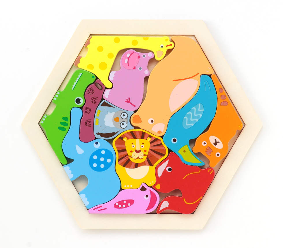 12種類の動物をモチーフにした、あたたかみのある木製パズルです。