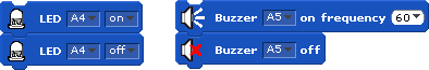 - Programs such as those shown here will run without any reaction from your LEDs and Buzzers.